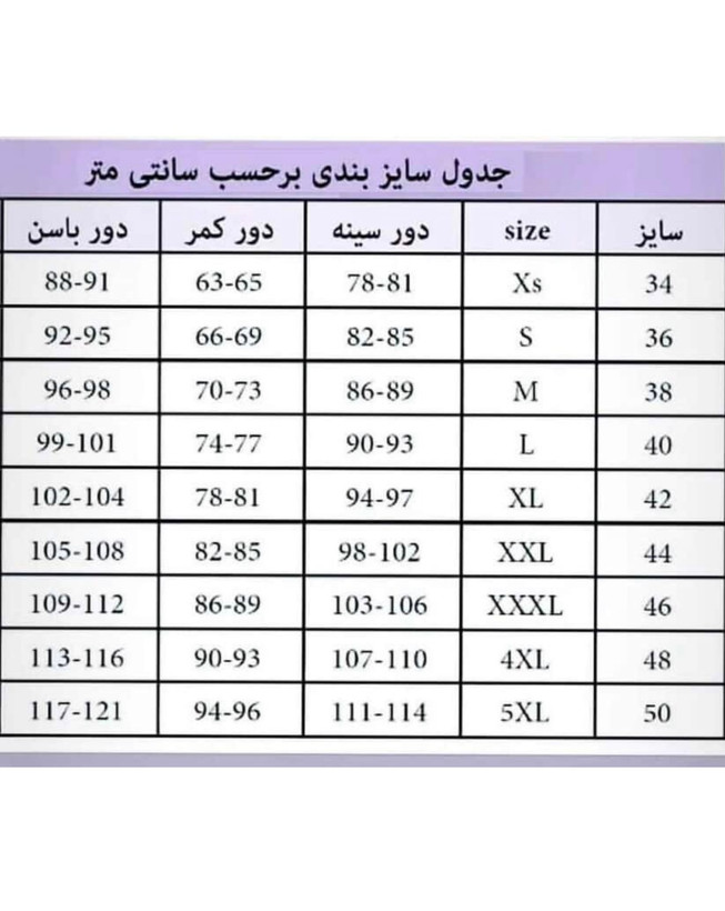 لطفا سایز فیت بدن متناسب با جدول سایزبندی انتخاب شود