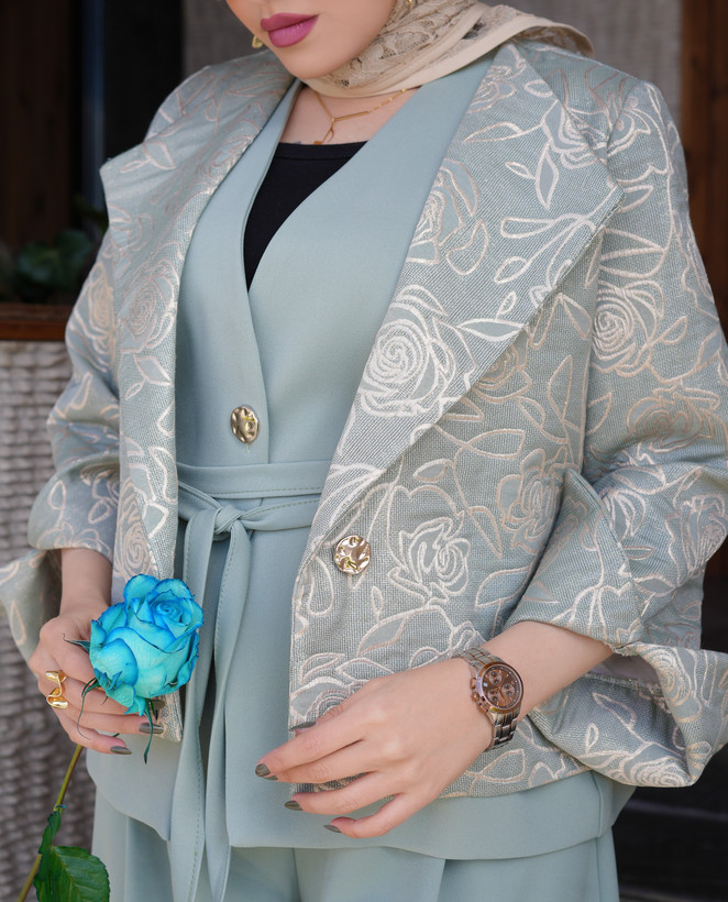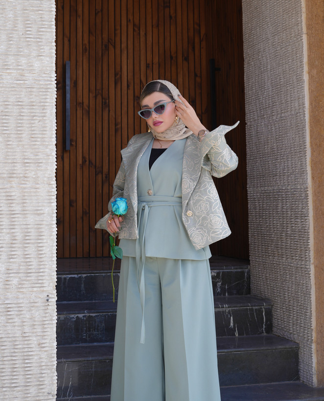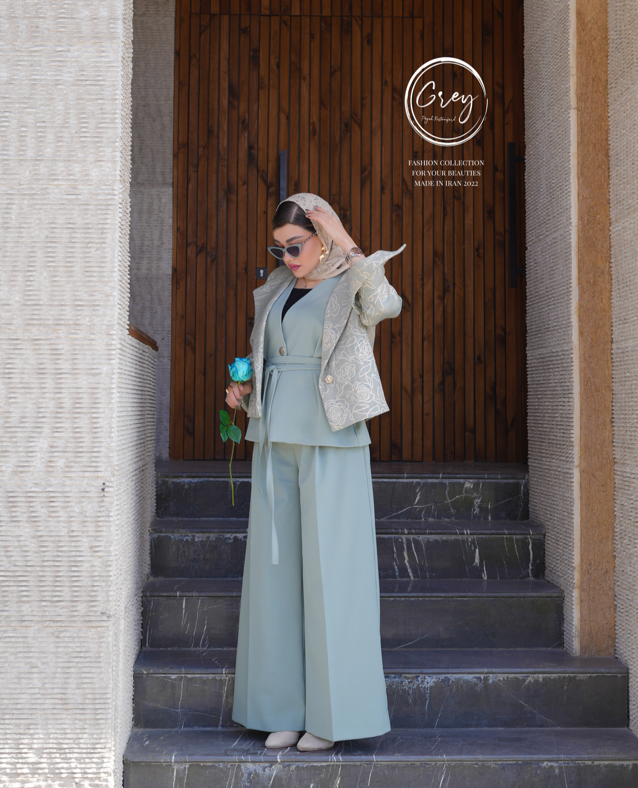 ✨جنس کت ژاکارد ترک لاییکوبی شده/وست و شلوار کرپ پالادیوم